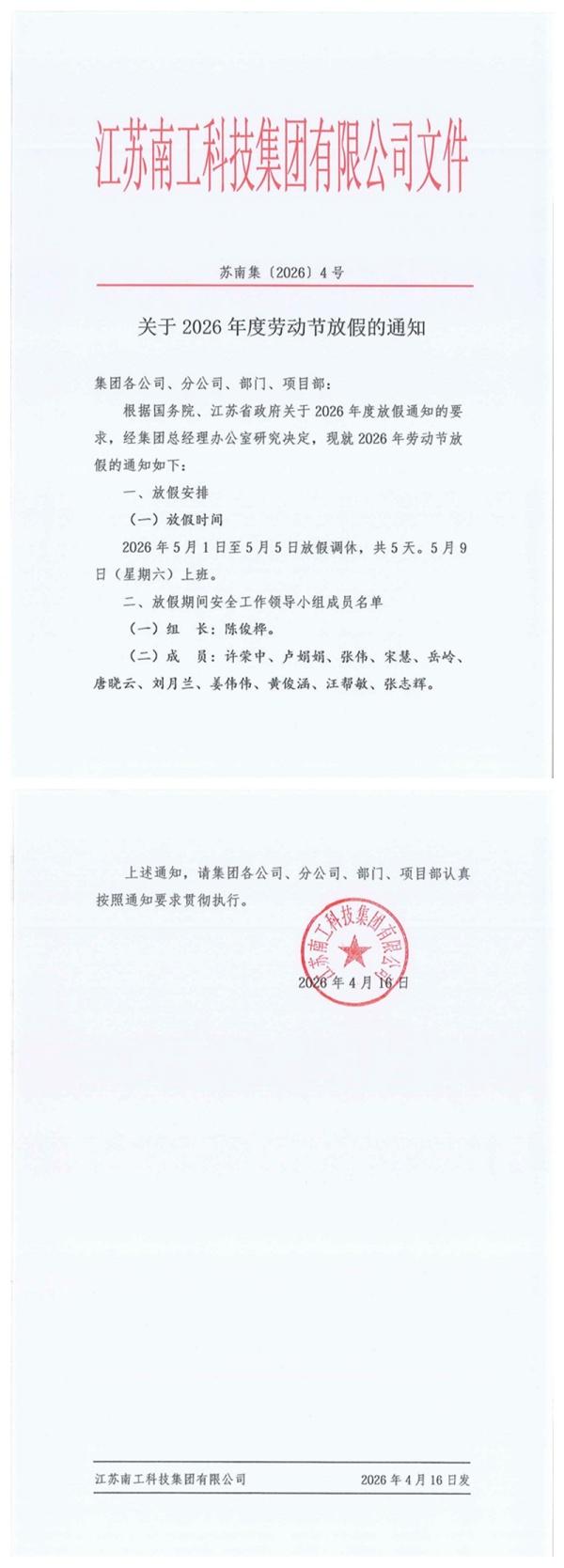 您的位置:集团首页 >> 新闻中心 >> 集团公告 >> 关于2026年度劳动节放假的通知