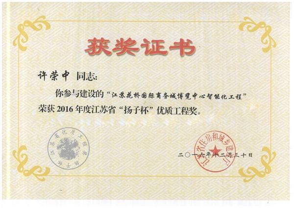 智能化工程“扬子杯”证书(许荣中)